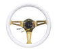 NRG Classic Wood Grain Steering Wheel 350mm White Grip w/Chrome Gold ST-015CG-WT