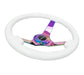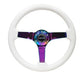 NRG Reinforced Steering Wheel (350mm / 3in. Deep) Classic White w/4mm Neochrome Solid 3-Spoke